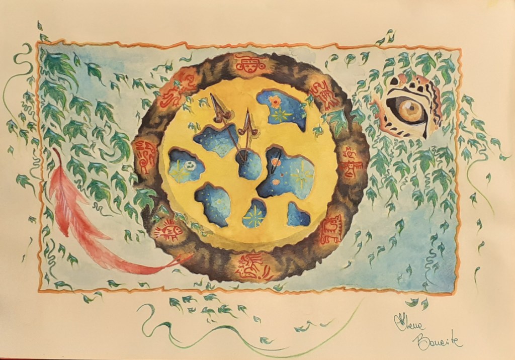 RICHIAMI Maya, acquerello e matite colorateMaya, spiegazione opera:https://www.youtube.com/watch?v=lw-BWElQZpQ